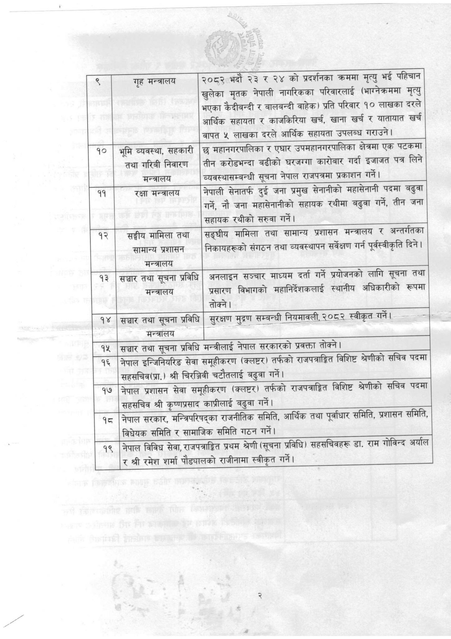 काठमाडौं । मन्त्रिपरिषद् बैठकका निर्णय सार्वजनिक गरेको छ । सञ्चार तथा सूचना प्रविधि मन्त्री जगदीश खरेलले शुक्रबार मन्त्रालयमा पत्रकार सम्मेलनमार्फत् १९ वटा निर्णय सार्वजनिक गरेका हुन् ।