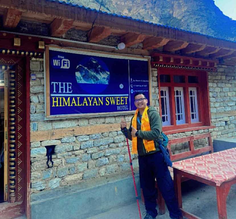 तापरिचामा भक्त दाजुको साथी तेजेन्द्र गुरुङ सरको हिमालयन सुइट होटलमा बास बस्यौं। अर्गानिक खाना आहा! कति मिठो, शब्दमा बयानै गर्न गाह्रो। धन्यवाद तेजेन्द्र सर हजुरको माया, स्नेह, सत्कार, केयर, आत्मीयता कति मिठो! म्याडम र त्यो क्युट बाबु सम्झँदा अझै मनमा रहन्छ। थकित शरीरलाई विश्राम दिएर भोलिपल्ट बिहानै फापरको रोटी, अचार र त्यो चिया आहा! कति स्वादिलो र तागतिलो। त्यस चियाले उकालोमा ठुलो साथ दिएको थियो।