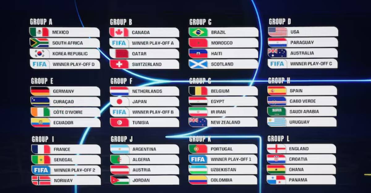 काठमाडौं । फिफा विश्वकप फुटबलको समूह चरणको ‘ड्र’ सार्वजनिक भएको छ । अमेरिकाको वाशिंगटन डिसीस्थित केनेडी सेन्टरमा शुक्रबार राति सम्पन्न विश्वकपको समूह चरणको ड्र मा ४८ देशलाई १२ समूहमा विभाजन गरिएको छ ।