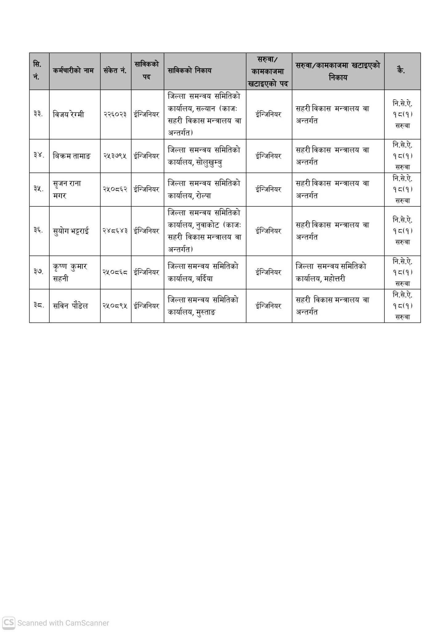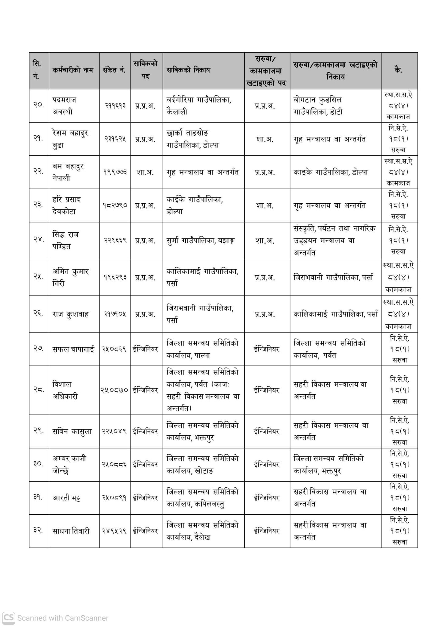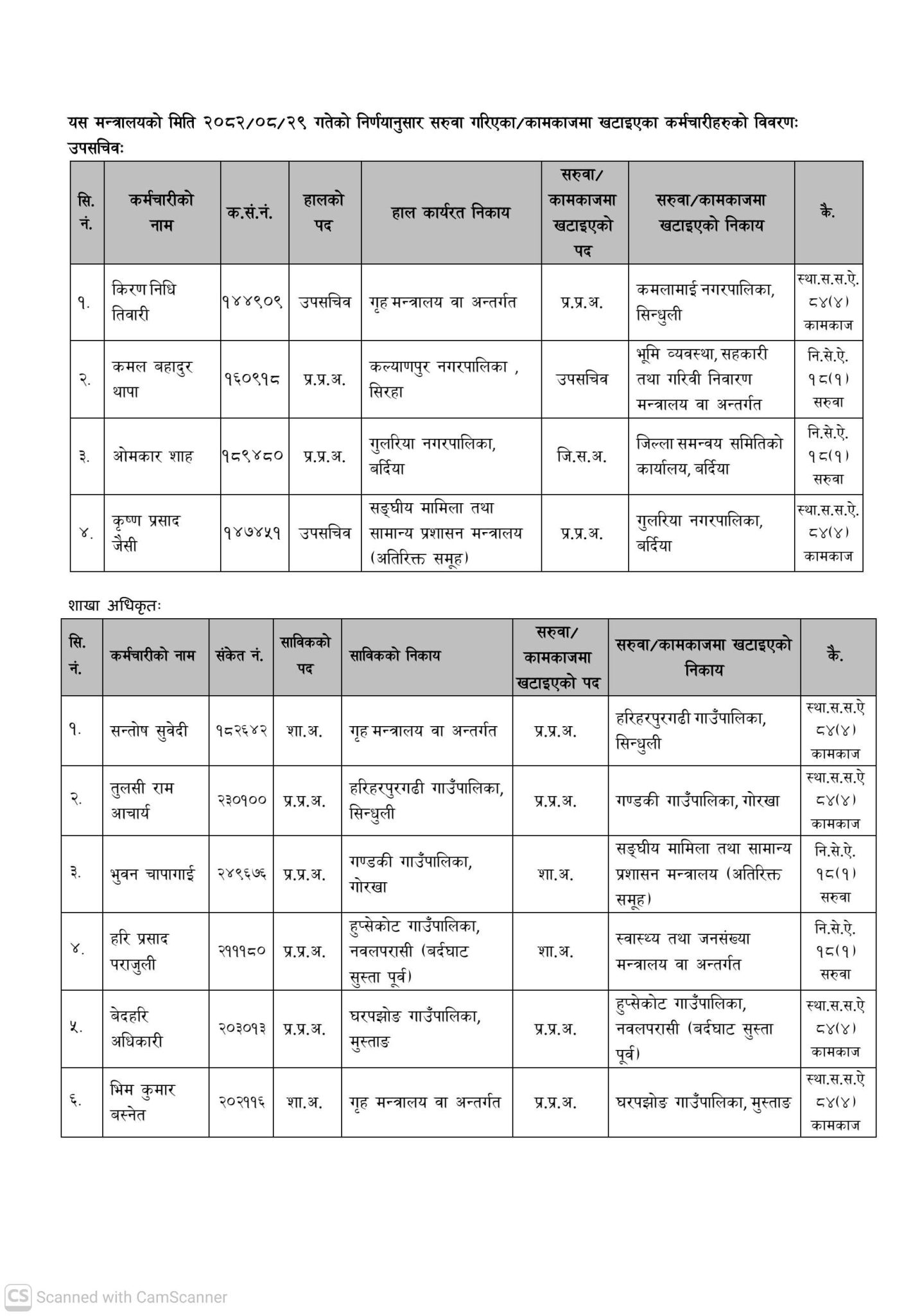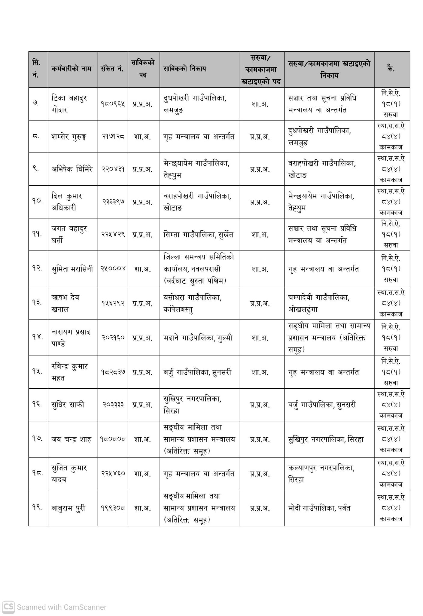संघीय मामिला तथा सामान्य प्रशासन मन्त्रालयले सोमबार गरेको निर्णय अनुसार विभिन्न स्थानीय तहमा कार्यरत प्रमुख प्रशासकीय अधिकृतसहित अधिकृतस्तरका कर्मचारीहरूको सरुवा सूची मंगलबार सार्वजनिक गरेको हो ।
